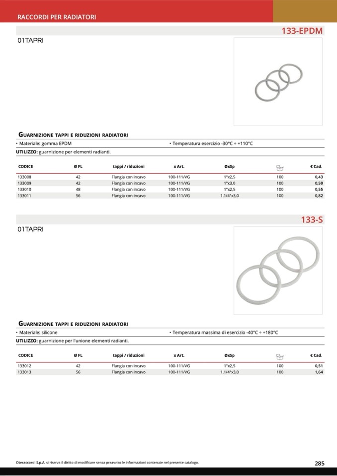 GUARNIZIONE TAPPI E RIDUZIONI RADIATORI