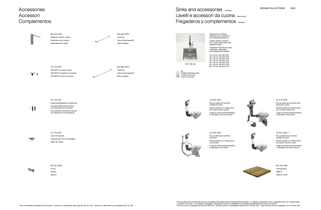 Pop-up waste and overflow sets are only compatible with single sinks in Polished Stainless Steel. / Le pilette e troppopieno sono compatibili solo con i singoli lavelli