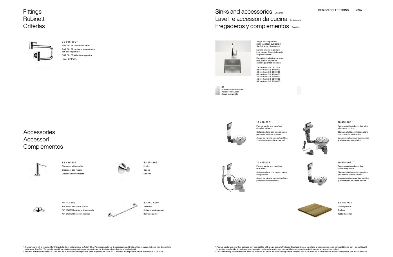 Pop-up waste and overflow sets are only compatible with single sinks in Polished Stainless Steel. / Le pilette e troppopieno sono compatibili solo con i singoli lavelli