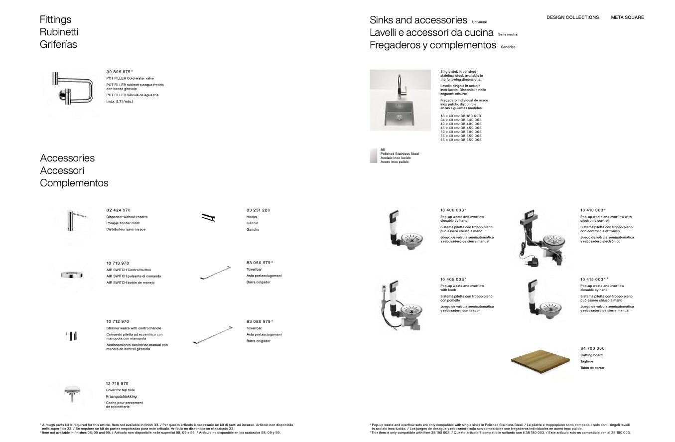Pop-up waste and overflow sets are only compatible with single sinks in Polished Stainless Steel. / Le pilette e troppopieno sono compatibili solo con i singoli lavelli