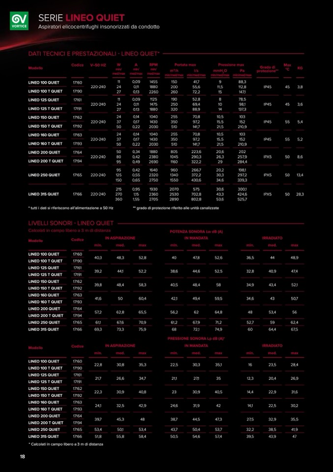 * tutti i dati si riferiscono all’alimentazione a 50 Hz