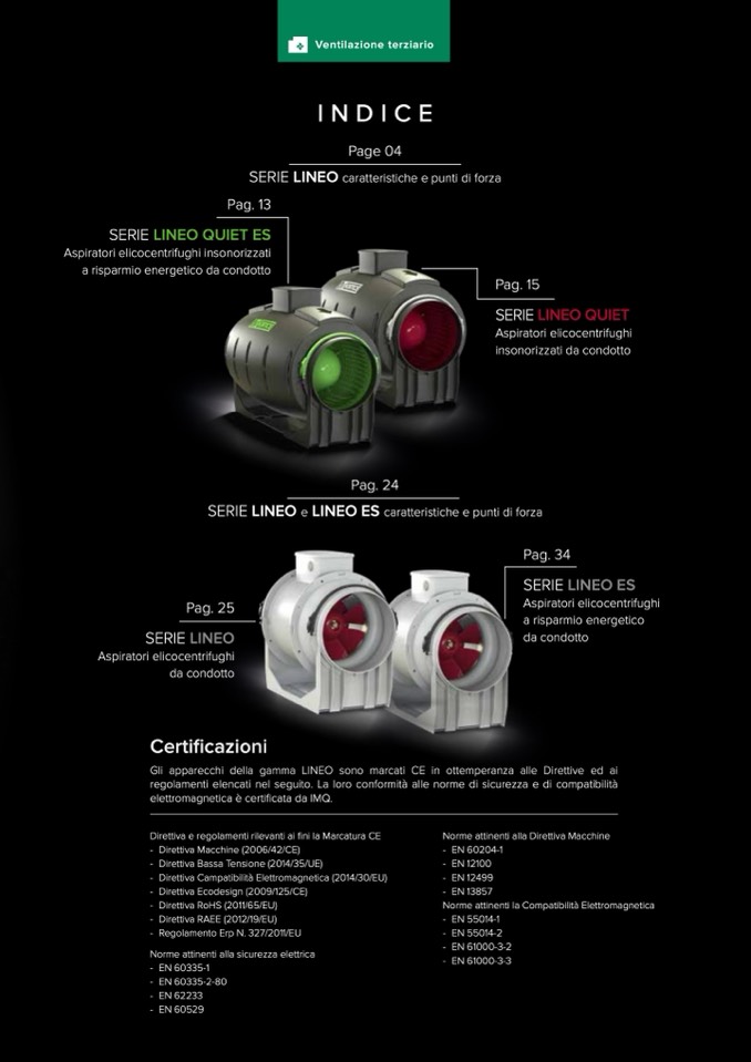 Gli apparecchi della gamma LINEO sono marcati CE in ottemperanza alle Direttive ed ai