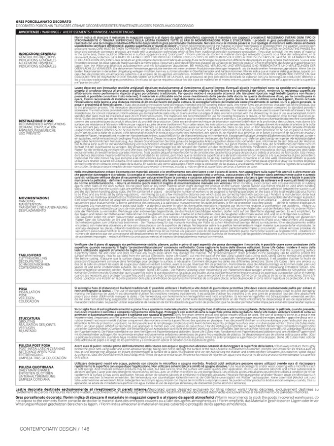 fferences in surface appearance and “color point”. / Florim précise de stocker le matériel dans des entrepôts couverts où à l’abri des intempéries, en l