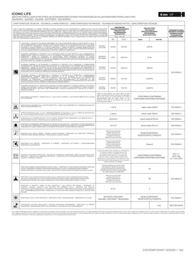 dalla norma EN 14411-ISO 13006 Appendice G gruppo BIa UGL/ Unglazed porcelain stoneware slabs. Dry-pressed ceramic tiles. Quality specifications,
