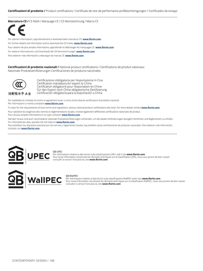 Pour obtenir de plus amples informations, approfondir et télécharger les marquages CE: www.florim.co