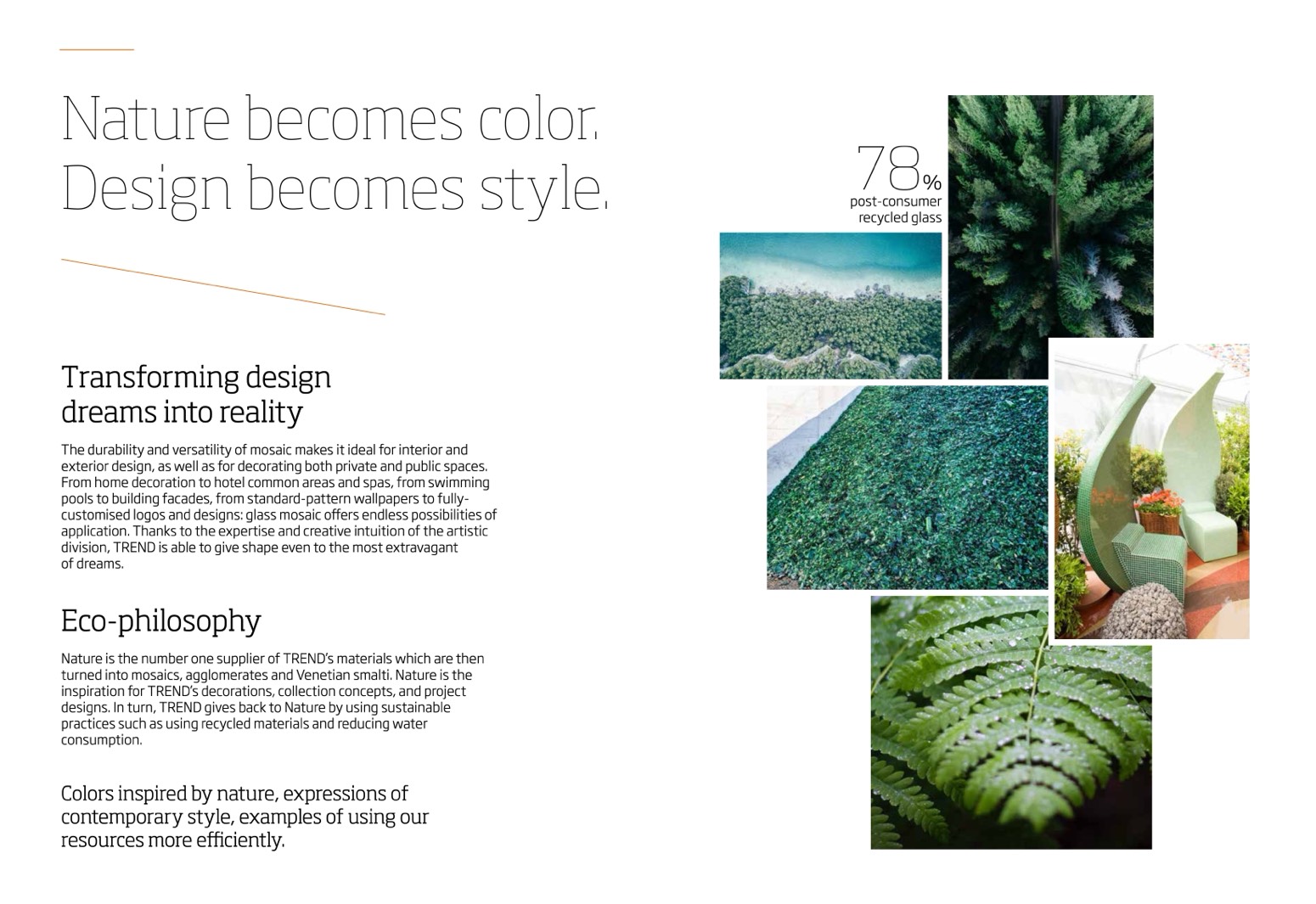 turned into mosaics, agglomerates and Venetian smalti. Nature is the