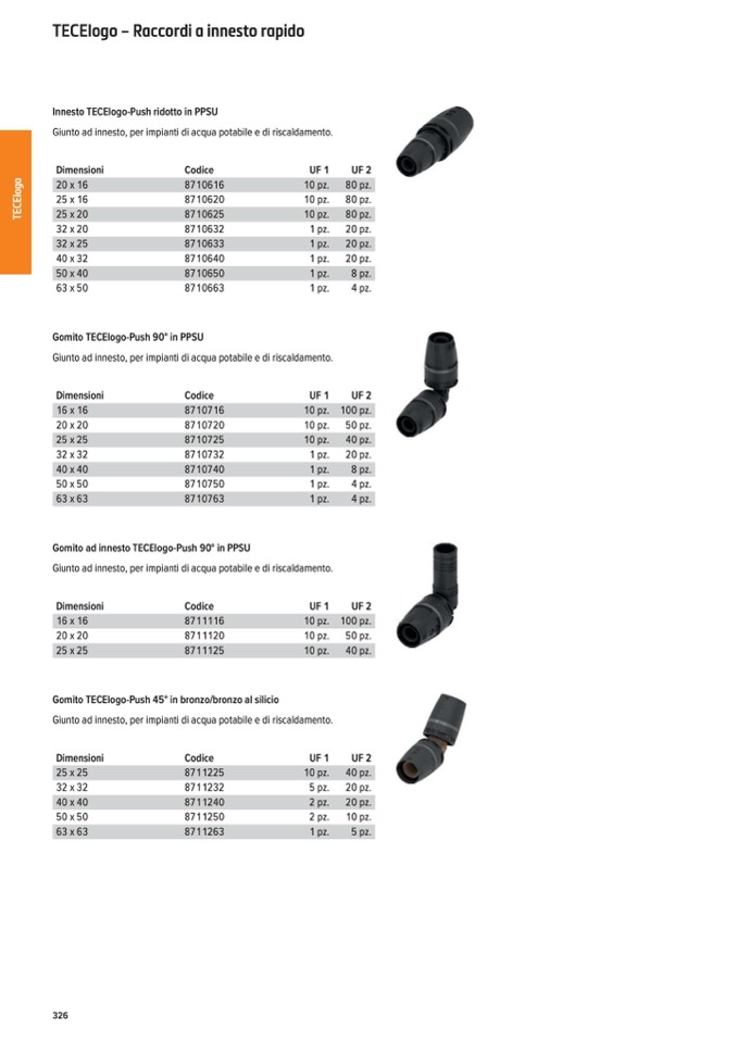 Gomito ad innesto TECElogo-Push 90° in PPSU
