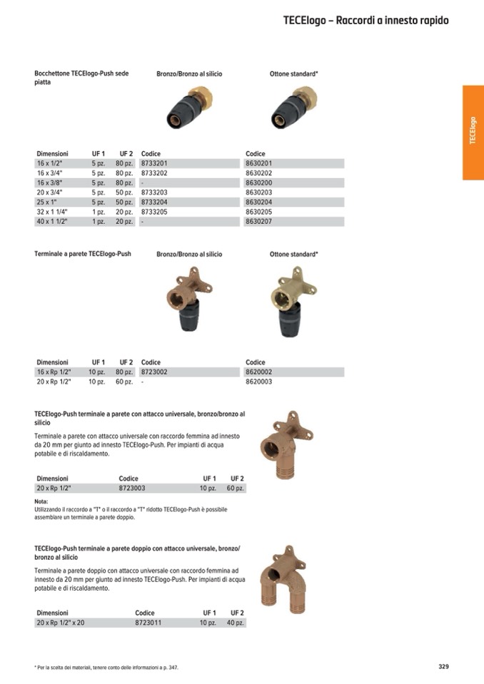 da 20 mm per giunto ad innesto TECElogo-Push. Per impianti di acqua
