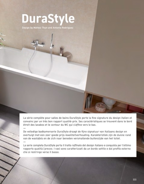 La serie completa DuraStyle porta il tratto raffinato del design italiano e conquista per l’ottimo
