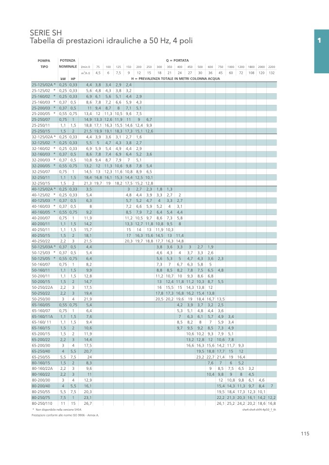 H = PREVALENZA TOTALE IN METRI COLONNA ACQUA