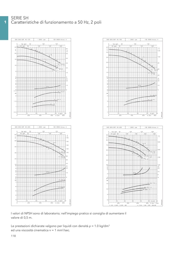 I valori di NPSH sono di laboratorio; nell’impiego pratico si consiglia di aumentare il