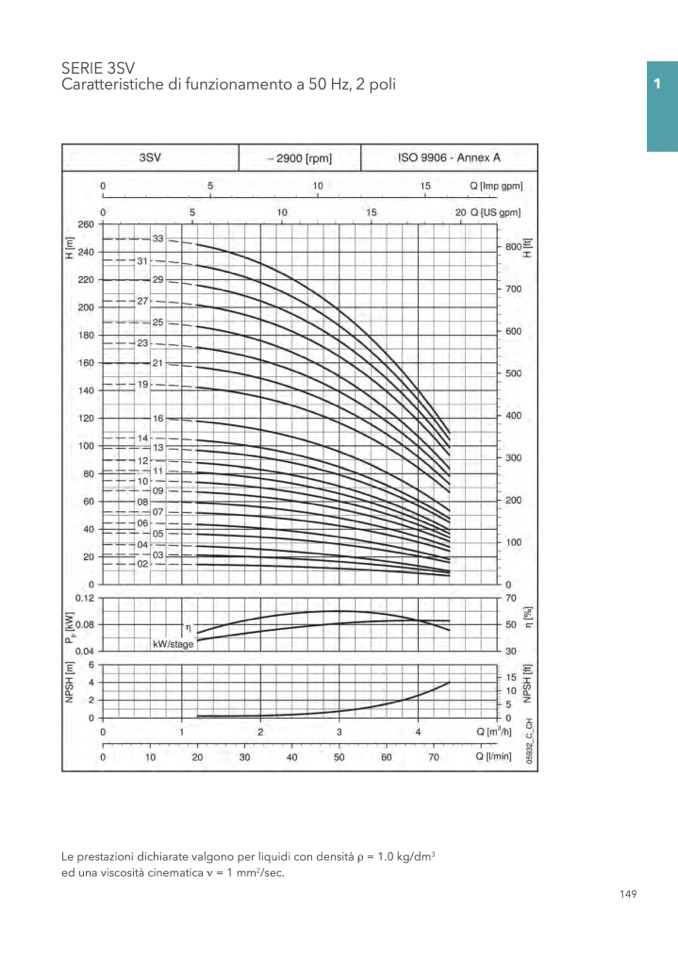 Le prestazioni dichiarate valgono per liquidi con densità ρ = 1.0 kg/dm