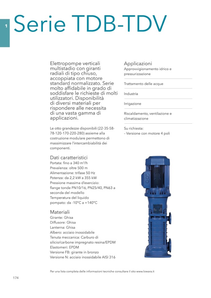 Per una lista completa delle informazioni tecniche consultare il sito www.lowara.it