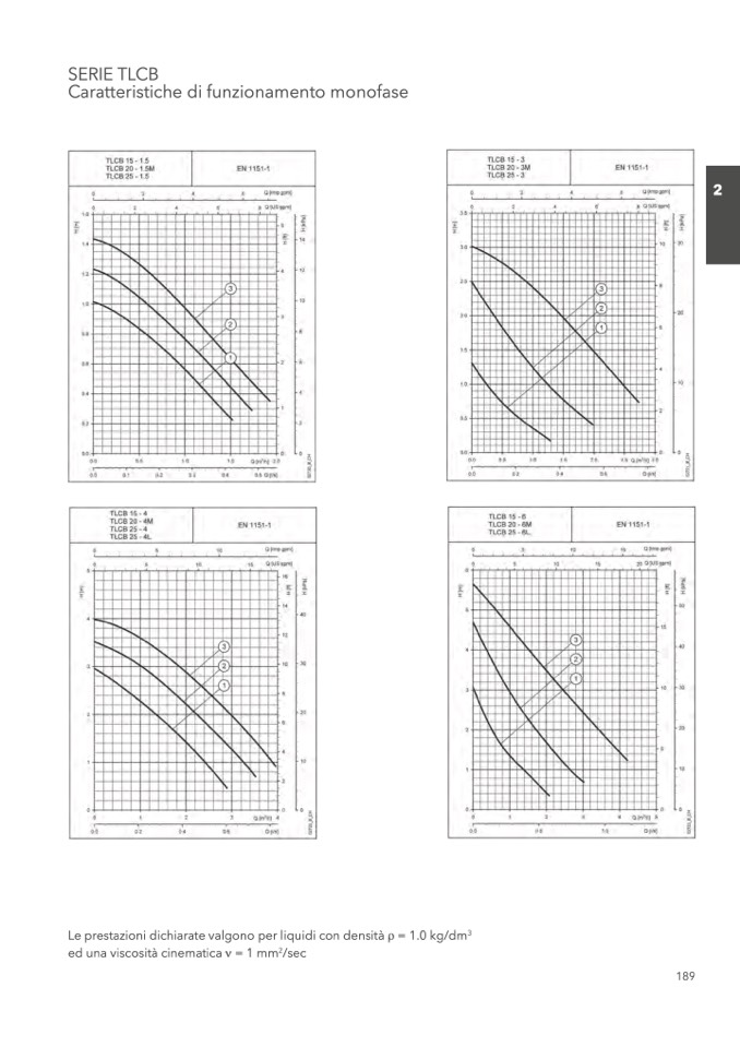 Le prestazioni dichiarate valgono per liquidi con densità ρ = 1.0 kg/dm