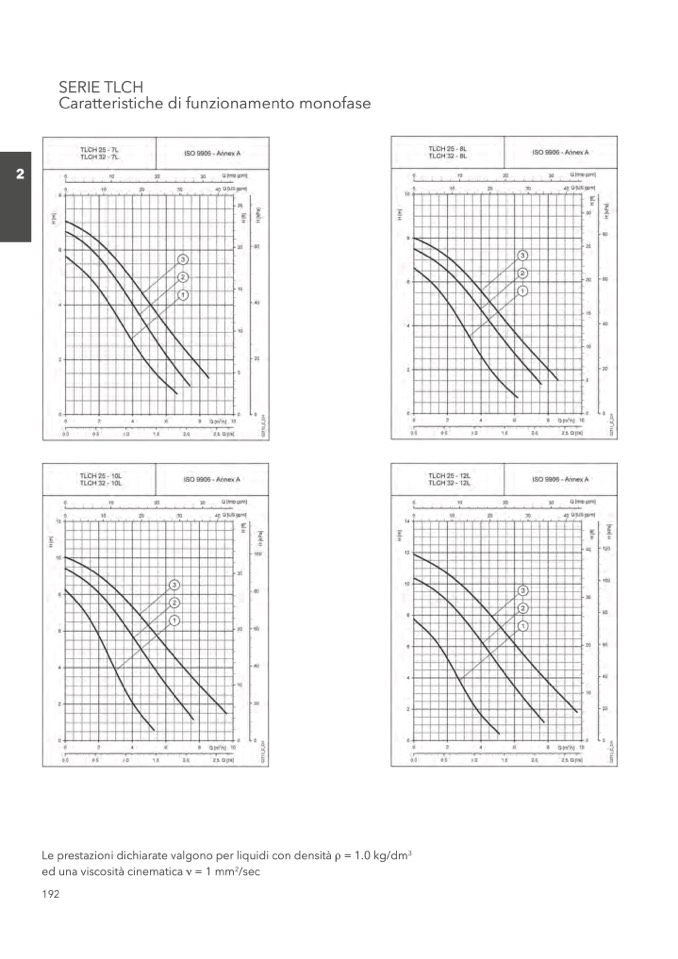 Le prestazioni dichiarate valgono per liquidi con densità ρ = 1.0 kg/dm