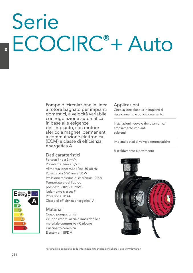 Per una lista completa delle informazioni tecniche consultare il sito www.lowara.it