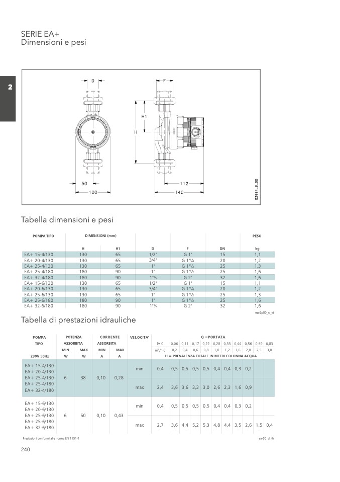 Prestazioni conformi alle norme EN 1151-1