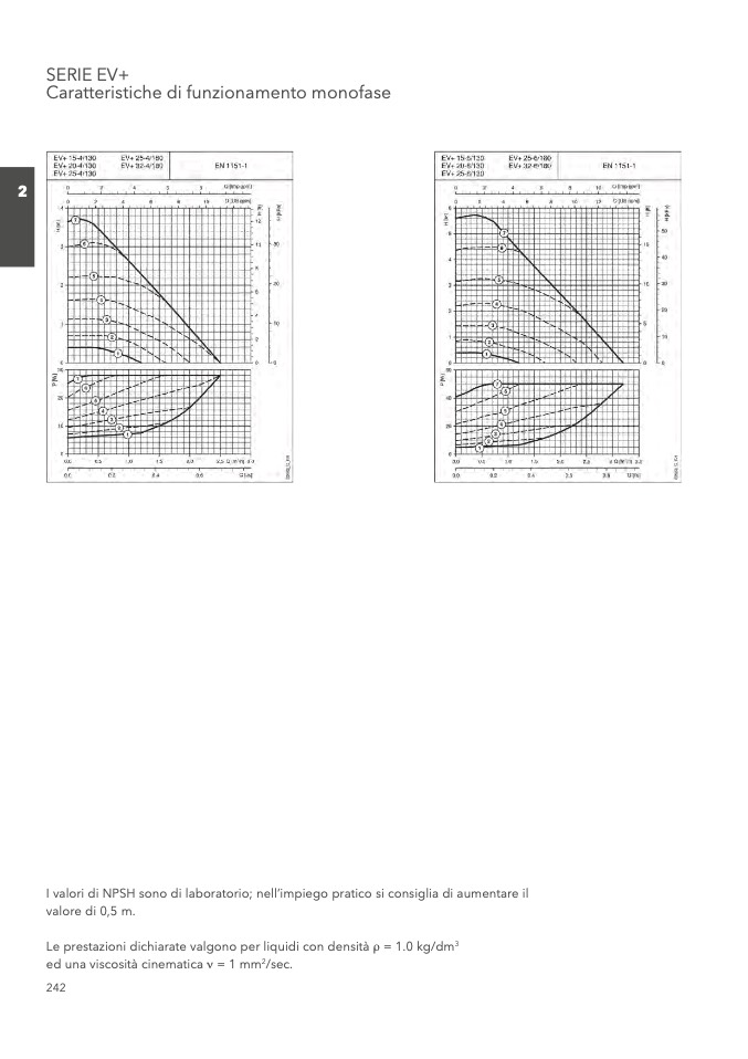 I valori di NPSH sono di laboratorio; nell’impiego pratico si consiglia di aumentare il