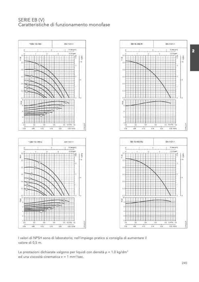 I valori di NPSH sono di laboratorio; nell’impiego pratico si consiglia di aumentare il