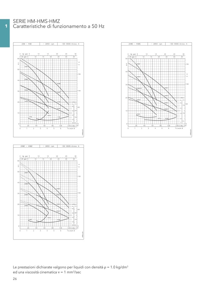 Le prestazioni dichiarate valgono per liquidi con densità ρ = 1.0 kg/dm