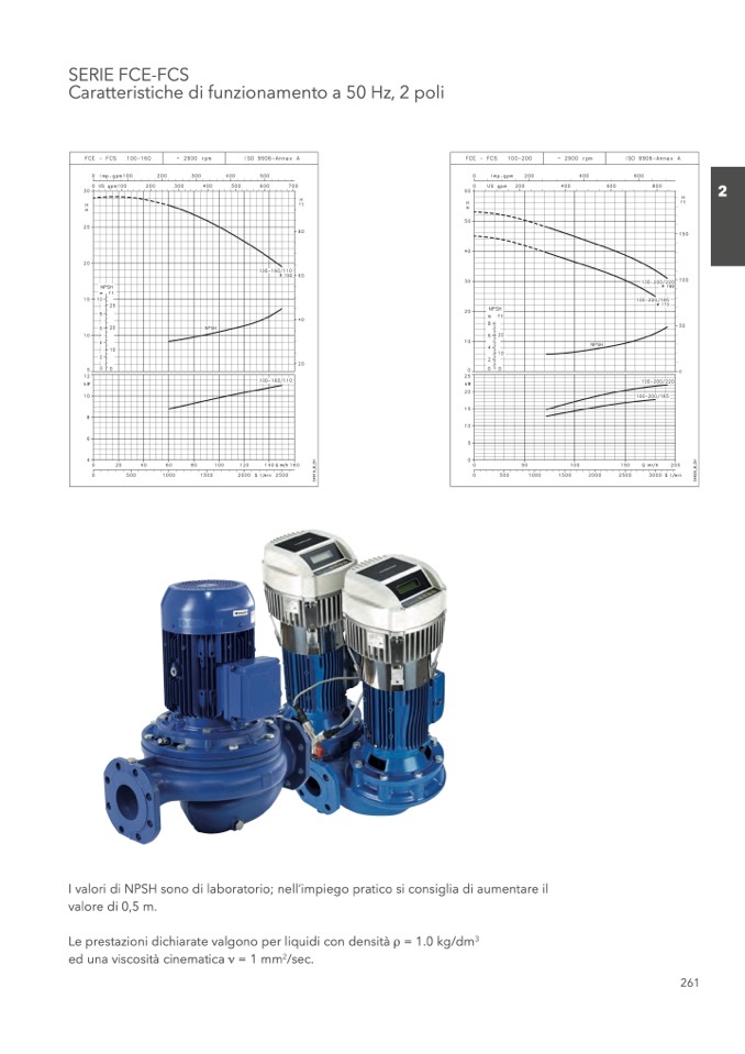 I valori di NPSH sono di laboratorio; nell’impiego pratico si consiglia di aumentare il