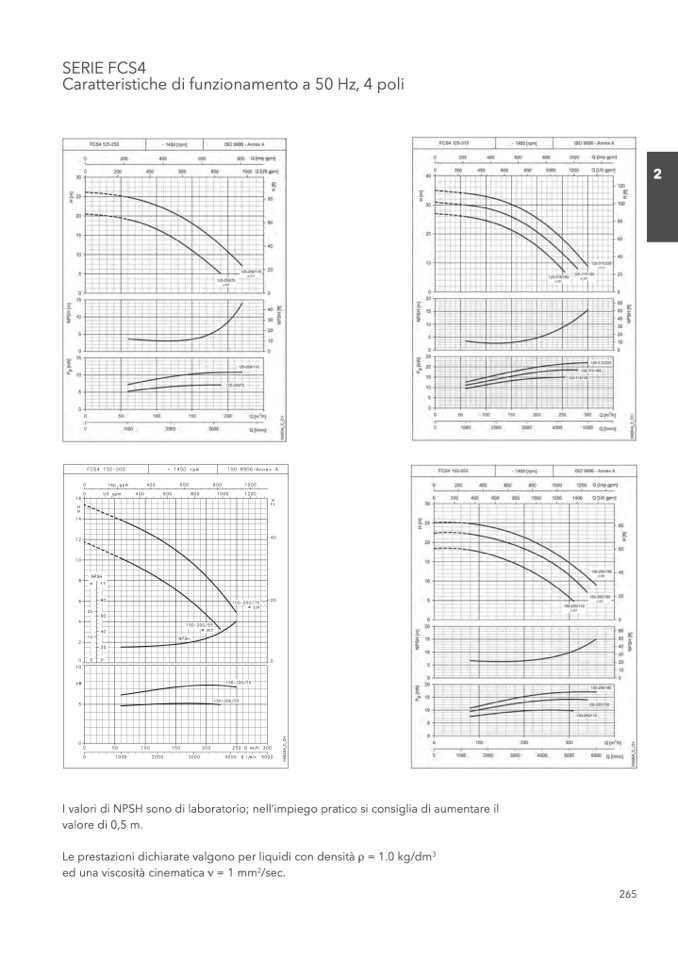 I valori di NPSH sono di laboratorio; nell’impiego pratico si consiglia di aumentare il