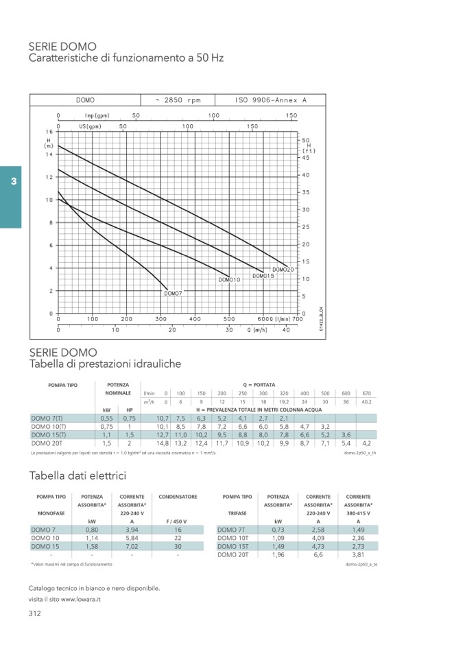 Le prestazioni valgono per liquidi con densità r = 1,0 kg/dm