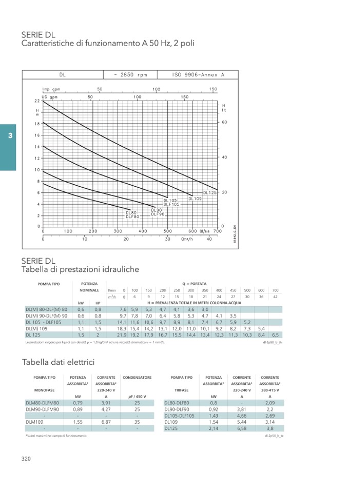 Le prestazioni valgono per liquidi con densità = 1,0 kg/dm3 ed una viscosità cinematica = 1 mm2/s.
