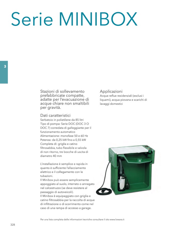 Per una lista completa delle informazioni tecniche consultare il sito www.lowara.it