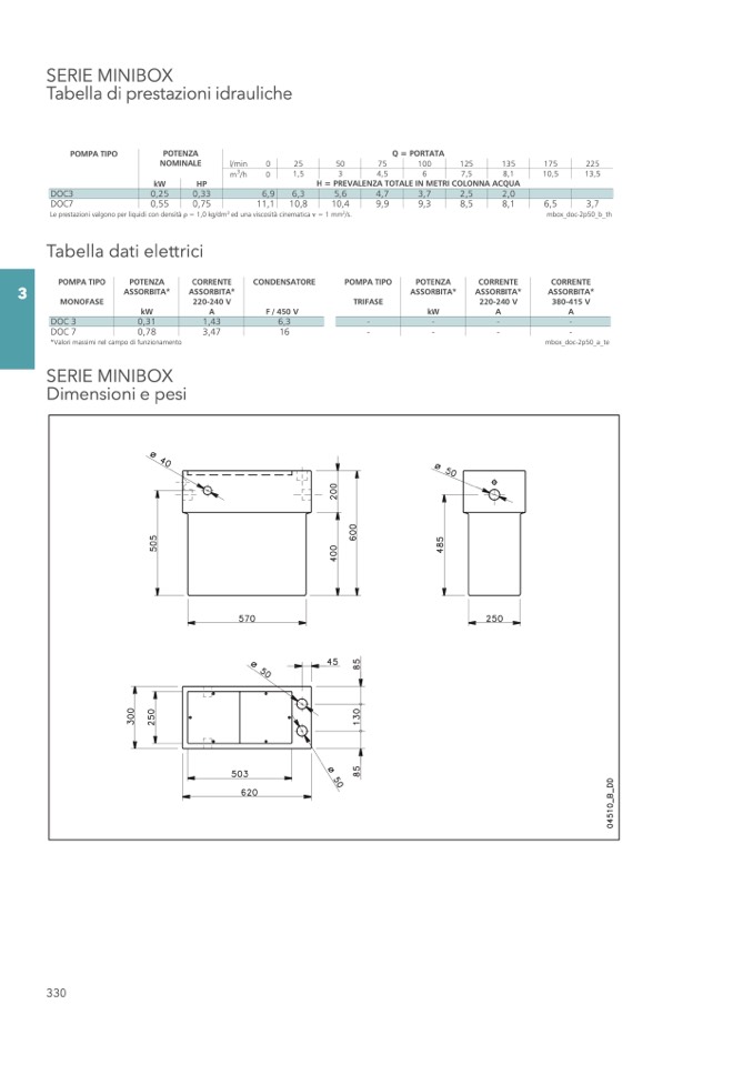 Le prestazioni valgono per liquidi con densità = 1,0 kg/dm