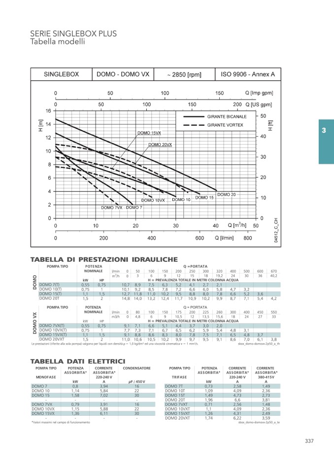 Le prestazioni (riferite alla sola pompa) valgono per liquidi con densit
