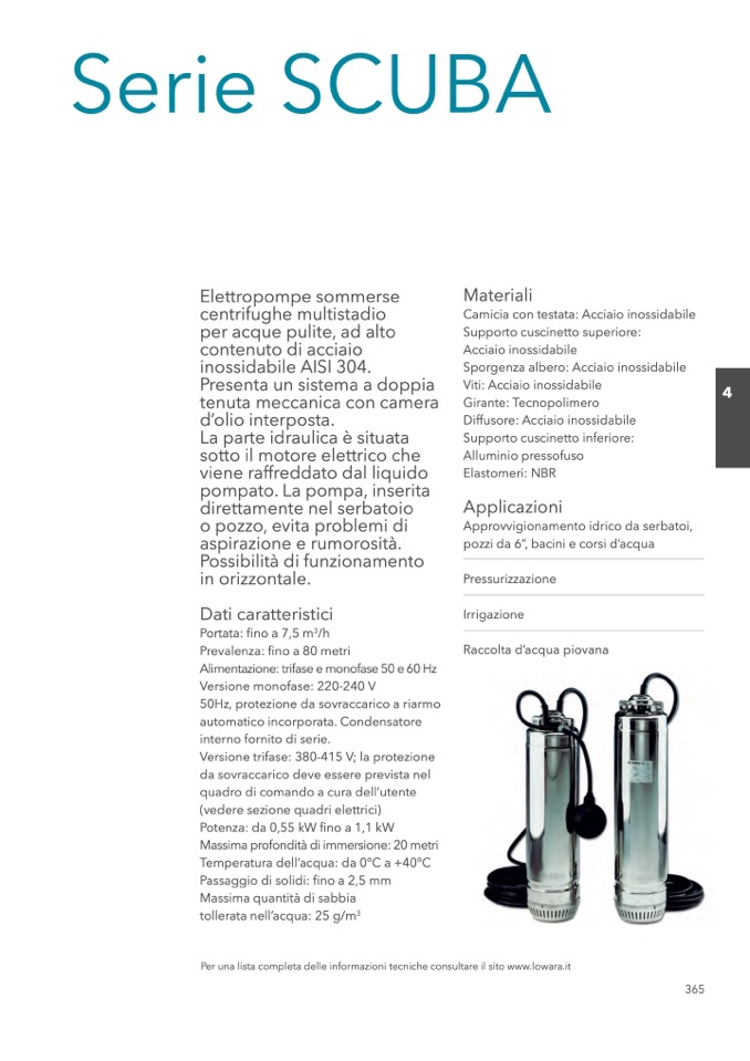 Per una lista completa delle informazioni tecniche consultare il sito www.lowara.it