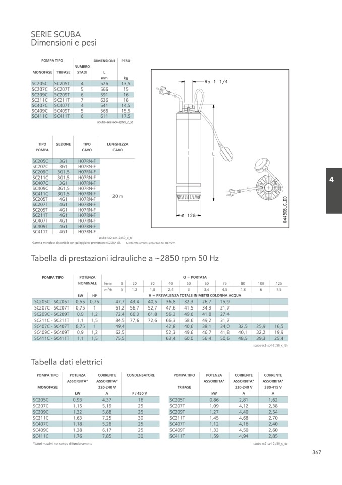 Gamma monofase disponibile con galleggiante premontato (SCUBA G).