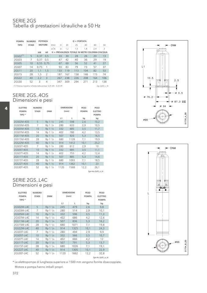 * Le elettropompe di lunghezza superiore ai 1500 mm vengono fornite disaccoppiate.
