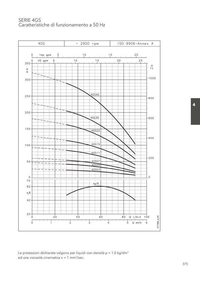 Le prestazioni dichiarate valgono per liquidi con densità ρ = 1.0 kg/dm