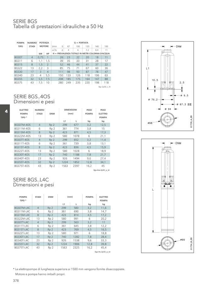 * Le elettropompe di lunghezza superiore ai 1500 mm vengono fornite disaccoppiate.