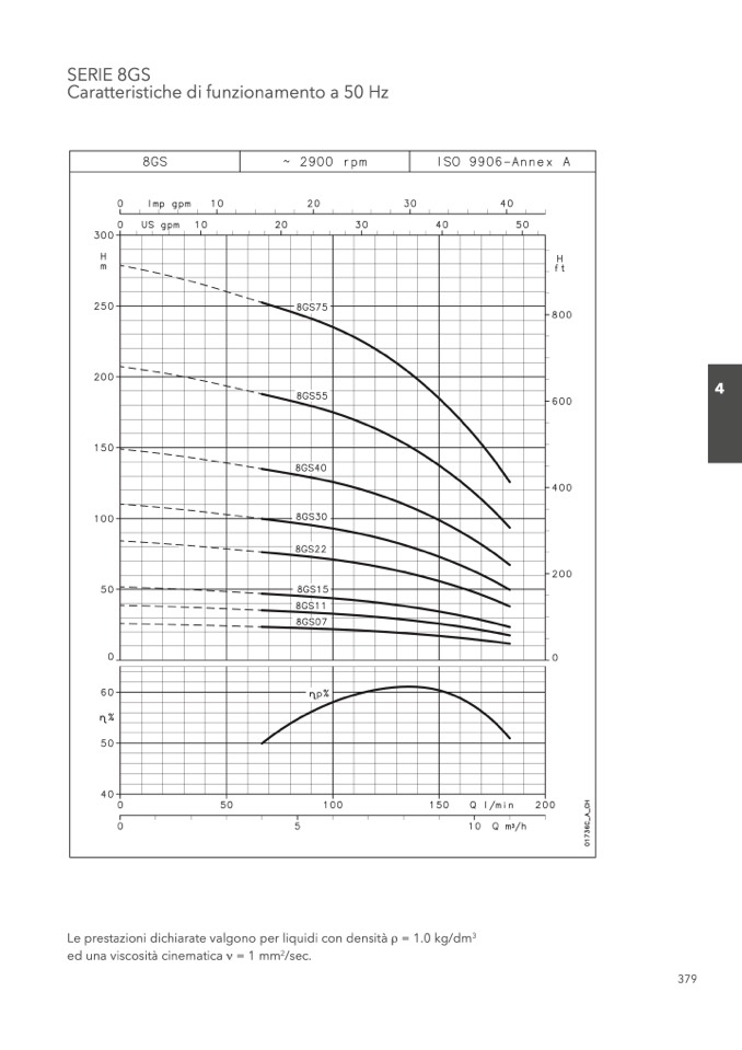 Le prestazioni dichiarate valgono per liquidi con densità ρ = 1.0 kg/dm