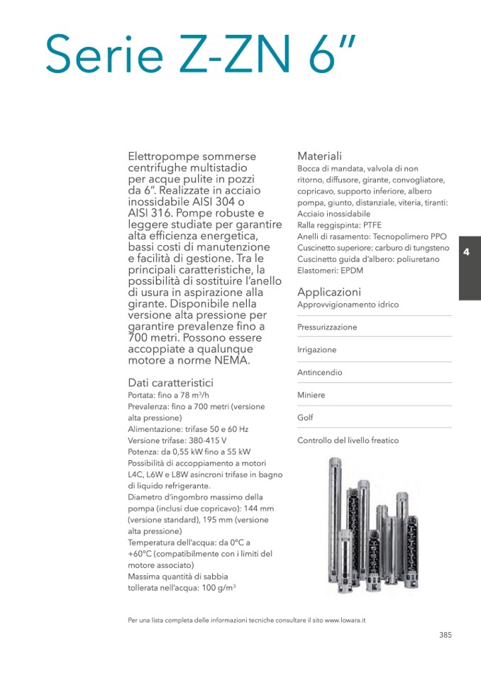 Per una lista completa delle informazioni tecniche consultare il sito www.lowara.it
