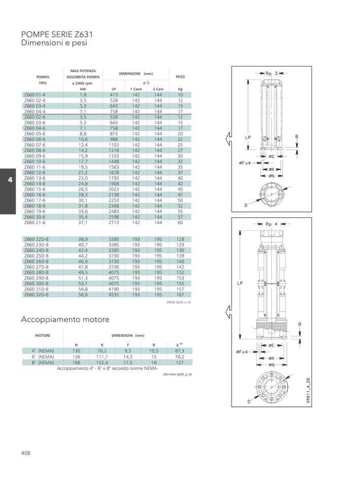 Accoppiamento 4" - 6" e 8" secondo norme NEMA