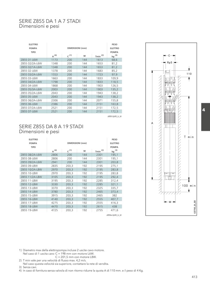 4) In caso di fornitura senza valvola di non ritorno ridurre la quota A di 110 mm. e il peso di 4 Kg.