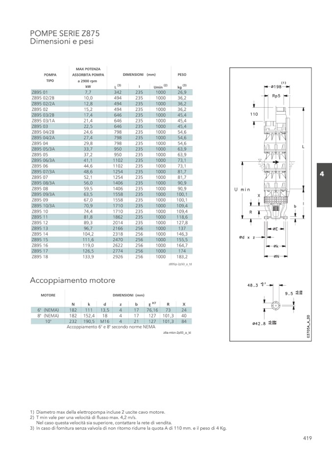 1) Diametro max della elettropompa incluse 2 uscite cavo motore.
