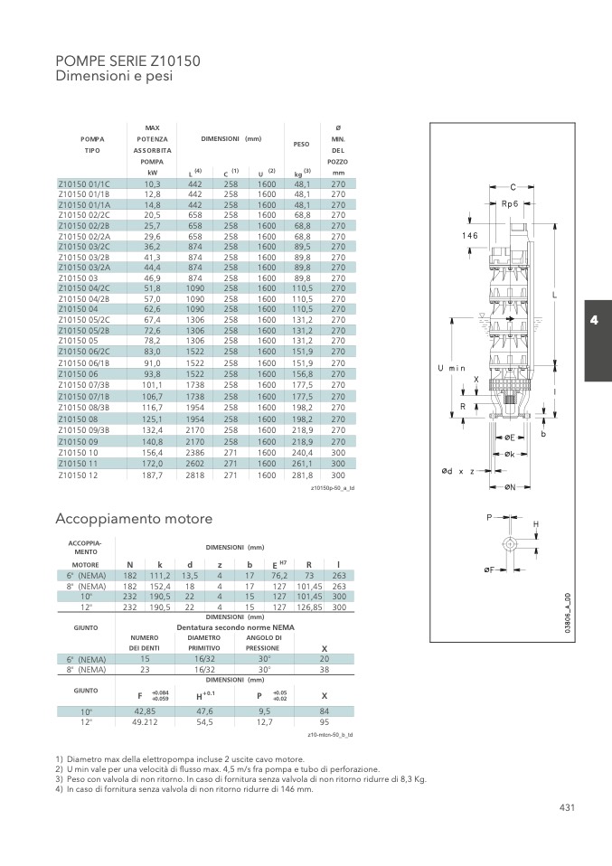 3) Peso con valvola di non ritorno. In caso di fornitura senza valvola di non ritorno ridurre di 8,3 Kg.