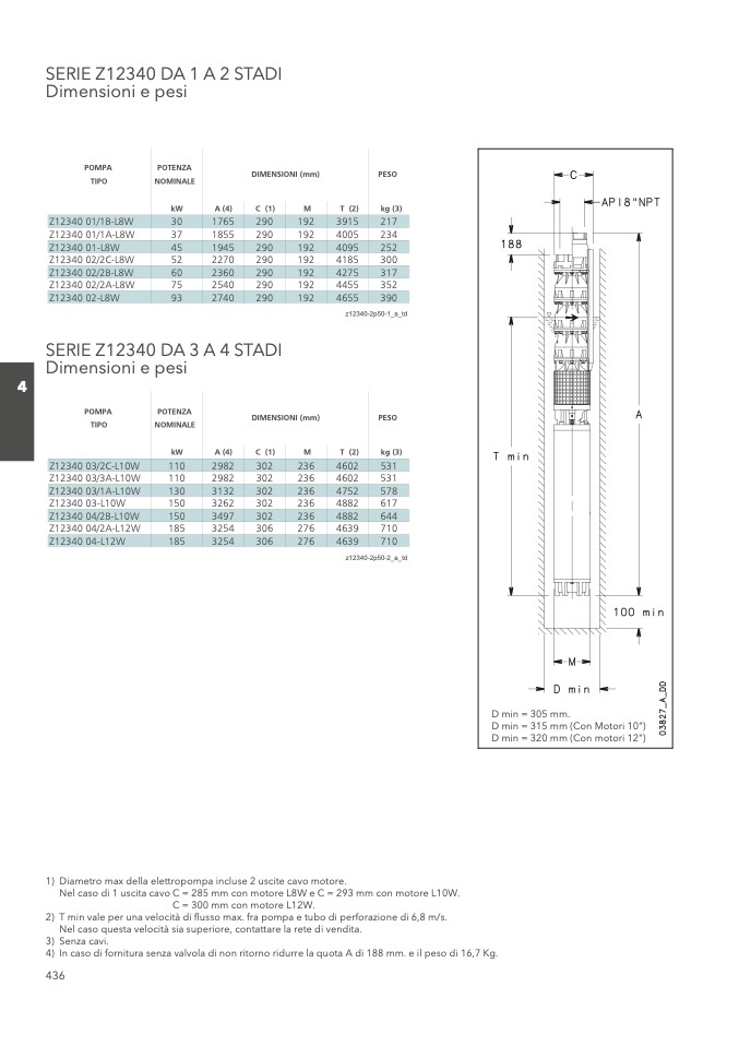 4) In caso di fornitura senza valvola di non ritorno ridurre la quota A di 188 mm. e il peso di 16,7 Kg.