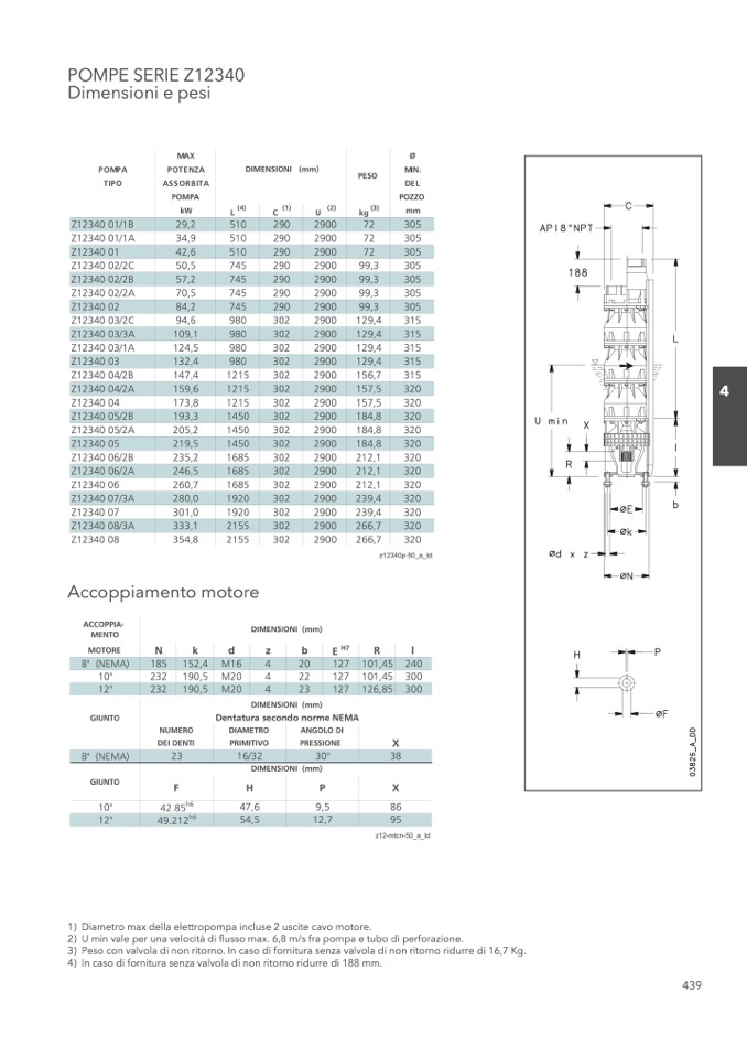 3) Peso con valvola di non ritorno. In caso di fornitura senza valvola di non ritorno ridurre di 16,7 Kg.