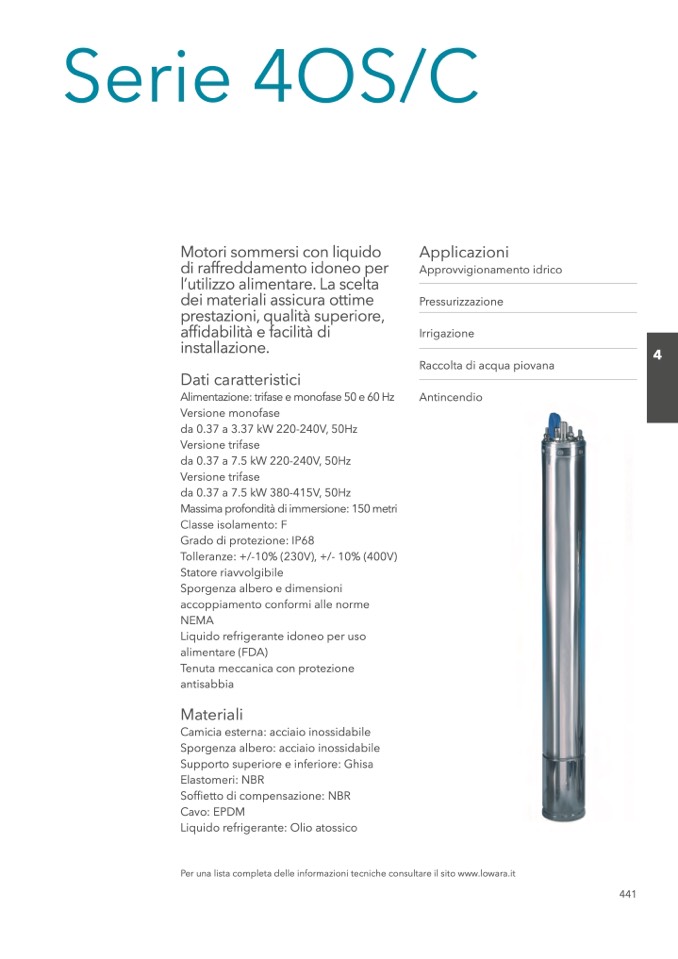 Per una lista completa delle informazioni tecniche consultare il sito www.lowara.it