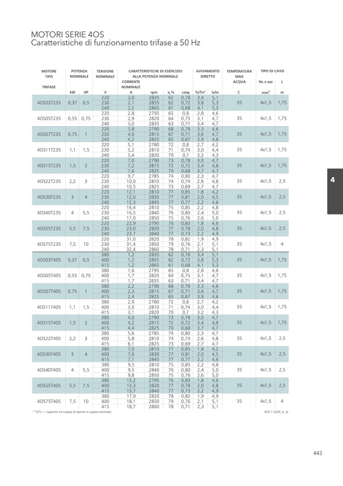 * Ts/Tn = rapporto tra coppia di spunto e coppia nominale.