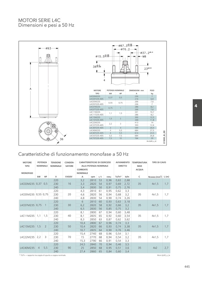 * Ts/Tn = rapporto tra coppia di spunto e coppia nominale.