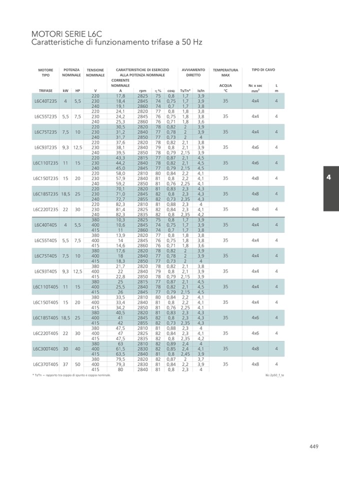 * Ts/Tn = rapporto tra coppia di spunto e coppia nominale.