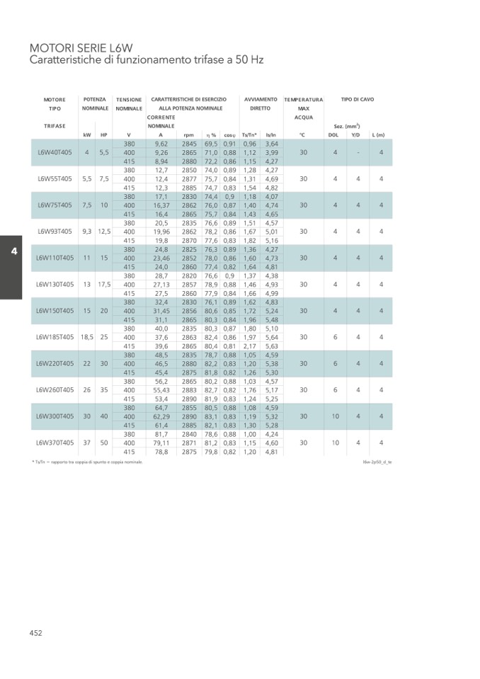 * Ts/Tn = rapporto tra coppia di spunto e coppia nominale.