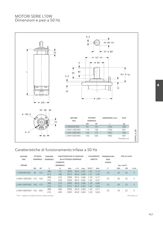 * Ts/Tn = rapporto tra coppia di spunto e coppia nominale.